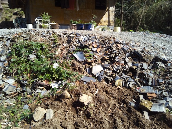 もしやこの瓦の残骸…やりっぱなし。。。いくら家周りの土台になるからって…