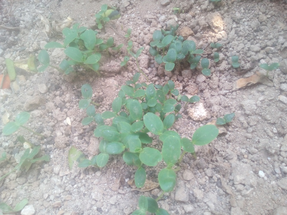 写真の真ん中の部分をよく見ると、スイカの種を被った小さな双葉が地面からにょきにょき!
