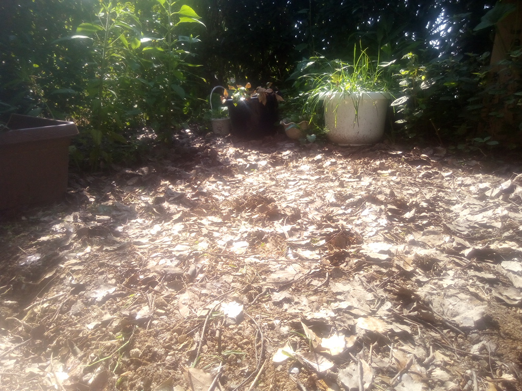 先日の記事で、落ち葉をいきなり庭全体に敷き詰めることをしたが、あれは失敗だったかもしれない。